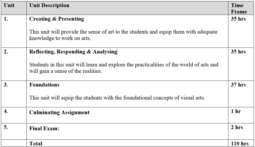 C1. Terminology: demonstrate an understanding of, and use correct terminology when referring to, elements, principles, and other components related to visual arts;