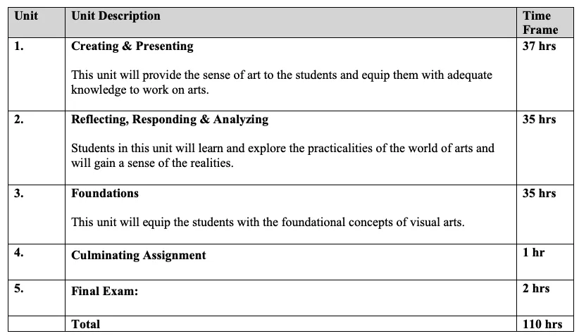 C1. Terminology: demonstrate an understanding of, and use correct terminology when referring to, elements, principles, and other components related to visual arts;