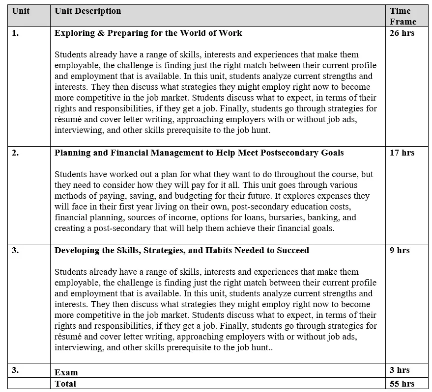 B3. Identifying Possible Destinations and Pathways taking their personal profile into account, explore, research, and identify a few postsecondary destinations of interest, whether in apprenticeship training, college, community living, university, or the workplace, and investigate the secondary school pathways that lead to those destinations.