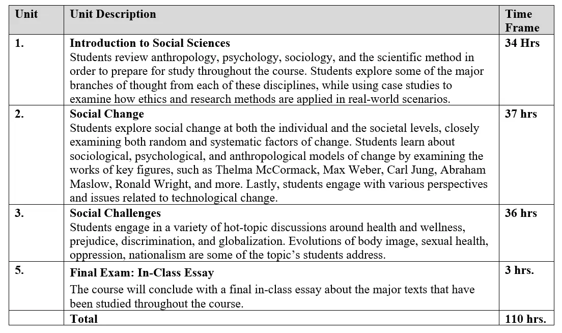 B1 Foundations for the Study of Social Change: demonstrate an understanding of the major theories, perspectives, and methodologies related to social change;