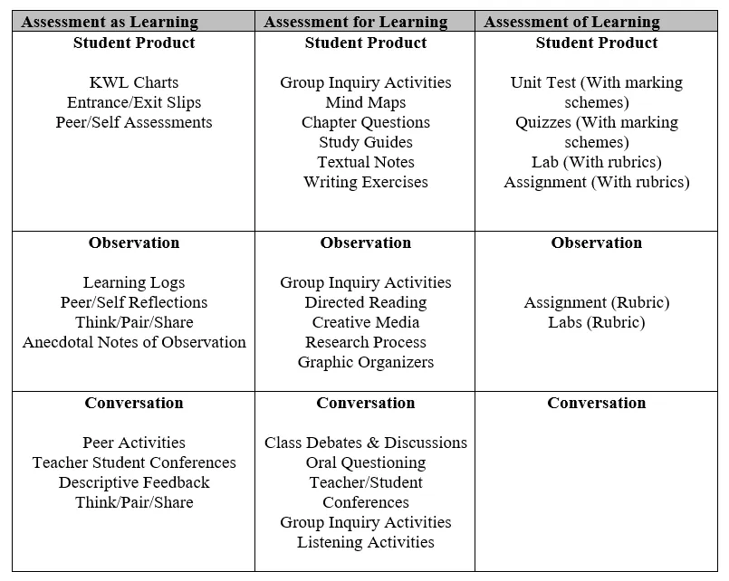 Growing Success describes the three assessment types as follows: