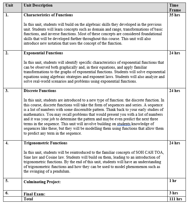1. demonstrate an understanding of functions, their representations, and their inverses, and make connections between the algebraic and graphical representations of functions using transformations;